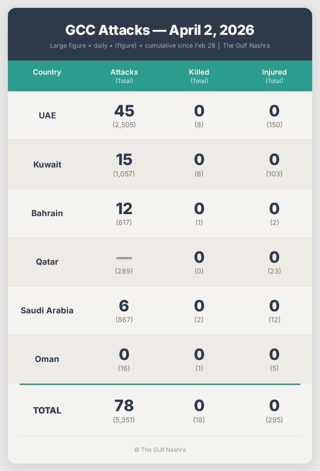 “Kuwait's Mina al-Ahmadi refinery hit by multiple drones, fire breaks out; no injuries.” Khaleej Times, April 3, 2026.