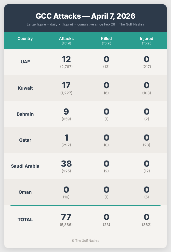 “Iran has attacked Saudi Arabia’s Jubail petrochemical complex, IRGC says.” Reuters, April 7, 2026.