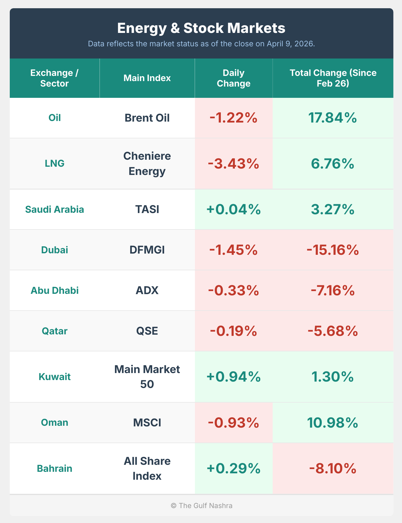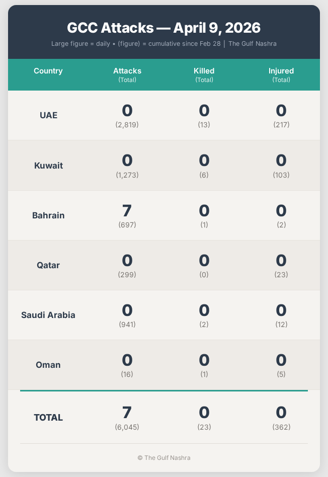 Iran War DailyIran War Daily — The Gulf ReportCovering April 9, 2026The Gulf NashraApr 10, 2026∙ PaidShareEnergy & Stock MarketsAttacks SummaryUpdatesContinue reading this post for free, courtesy of The Gulf Nashra.Claim my free postOr purchase a paid subscription.